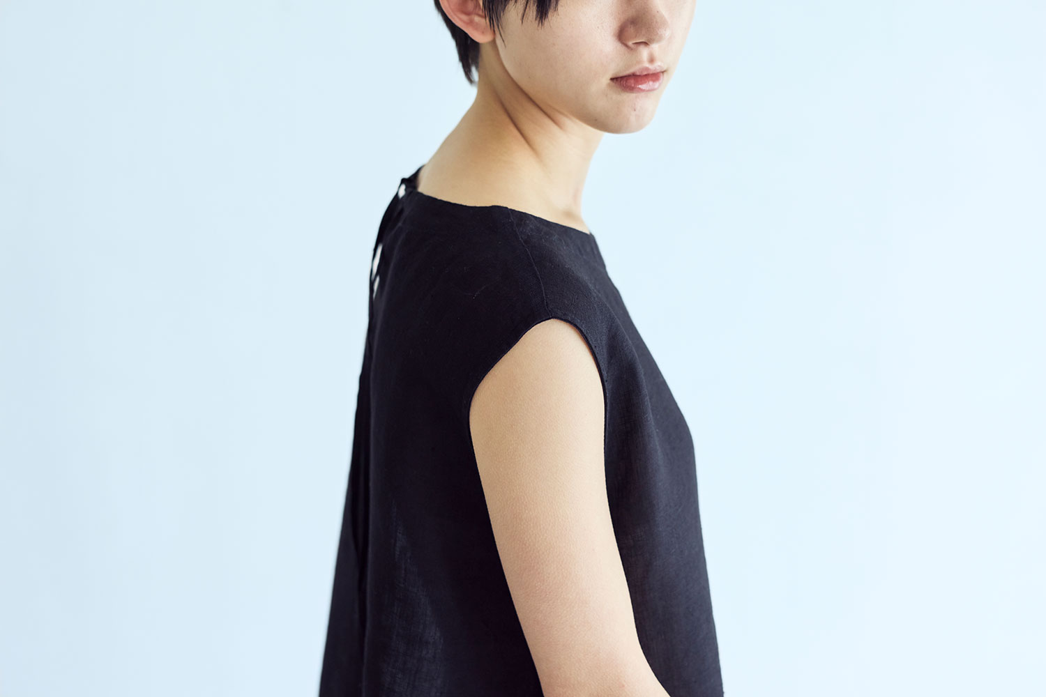 肩幅をやや広めにとり、肩先に自然とかかるデザインで、腕まわりをすっきりと見せてくれます。