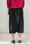 「一見、ひざ下スカートのようにも見えるパンツは、たっぷりしているので、部屋着にしたいくらいのリラックス感がありますが、見た目はおしゃれなのが嬉しい。個性的なシルエットなので、シンプルにTシャツやニットと合わせて着たいです。わたしがウエストで着るとふくらはぎの上、少し腰を落として履くと、ふくらはぎが隠せる丈です。 」