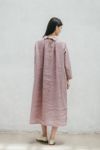 重なった小さな襟はバックでボタンでとめる仕様。一枚でさらりと着るのはもちろん、小物次第ではきちんとした場面にも。