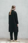 「リネンのコートって洗えるし、気楽に着れるのがいいですよね。ブラックもリネンだと重く見えなくて、軽やかに着られます。シンプルな形ですっきりとしたシルエットなので、仕事の時に着るのもよさそう。」