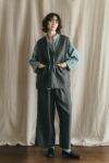 メリサ ベスト グリーブルー・a href='https://foglinenwork.com/c/gr125/LWC016-2425'>パールスラ スタンドカラーリボントップ クレール