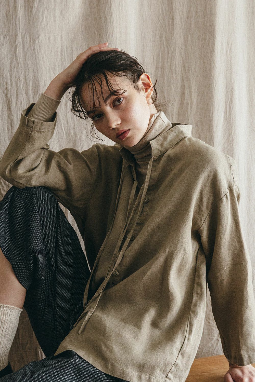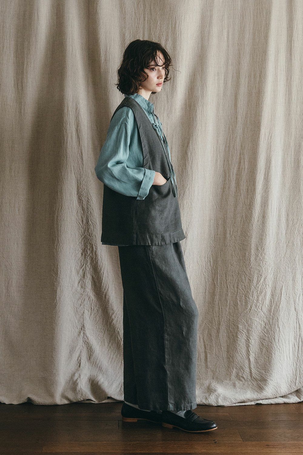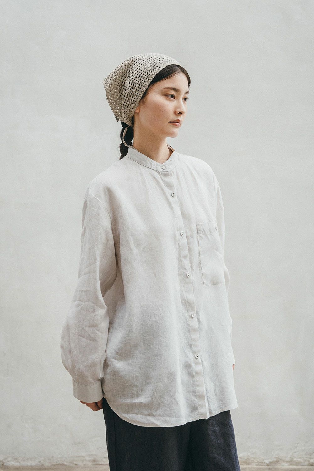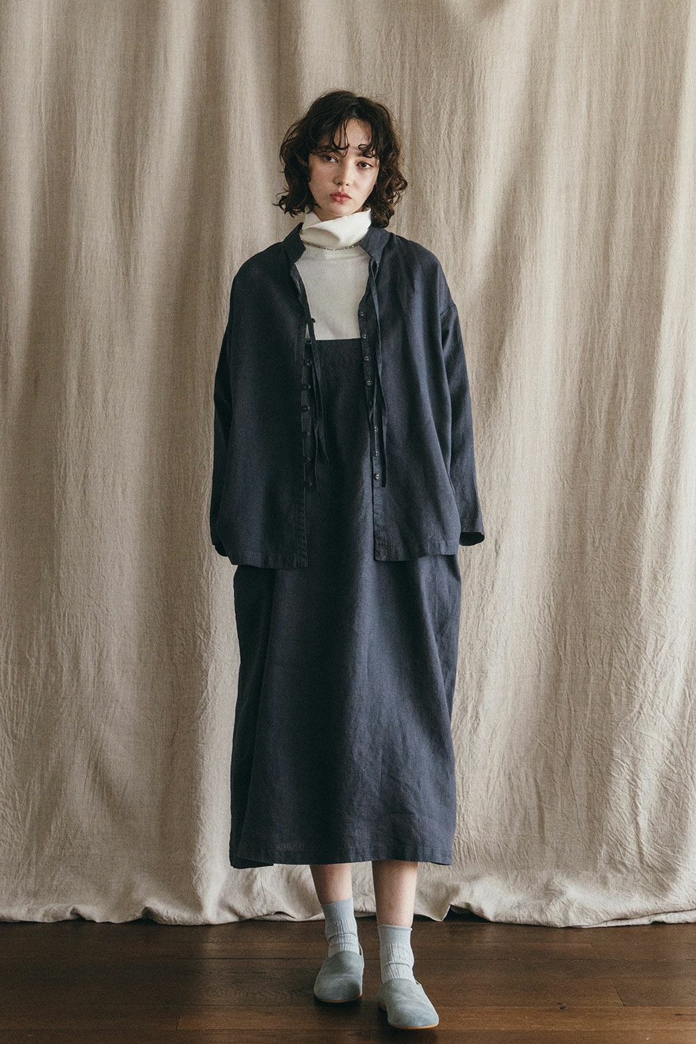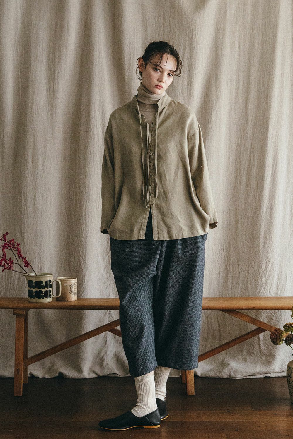 パールスラ スタンドカラーリボントップ アッシュグレイ