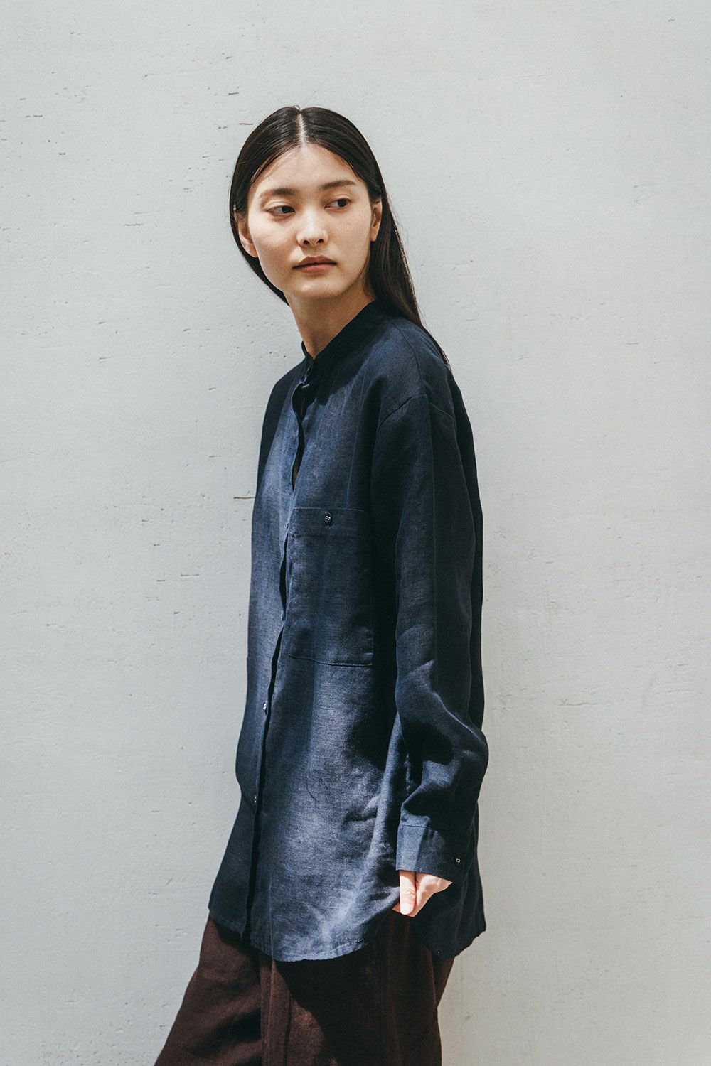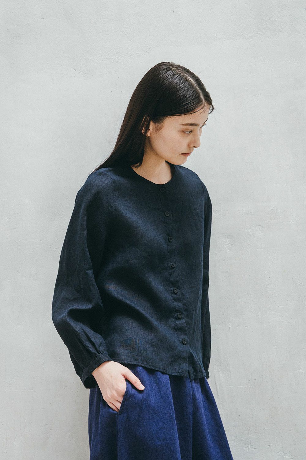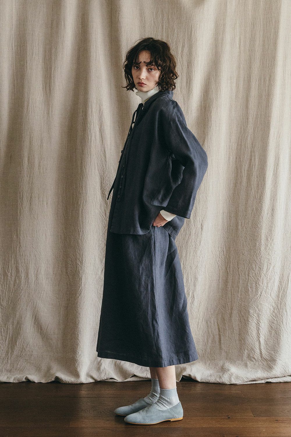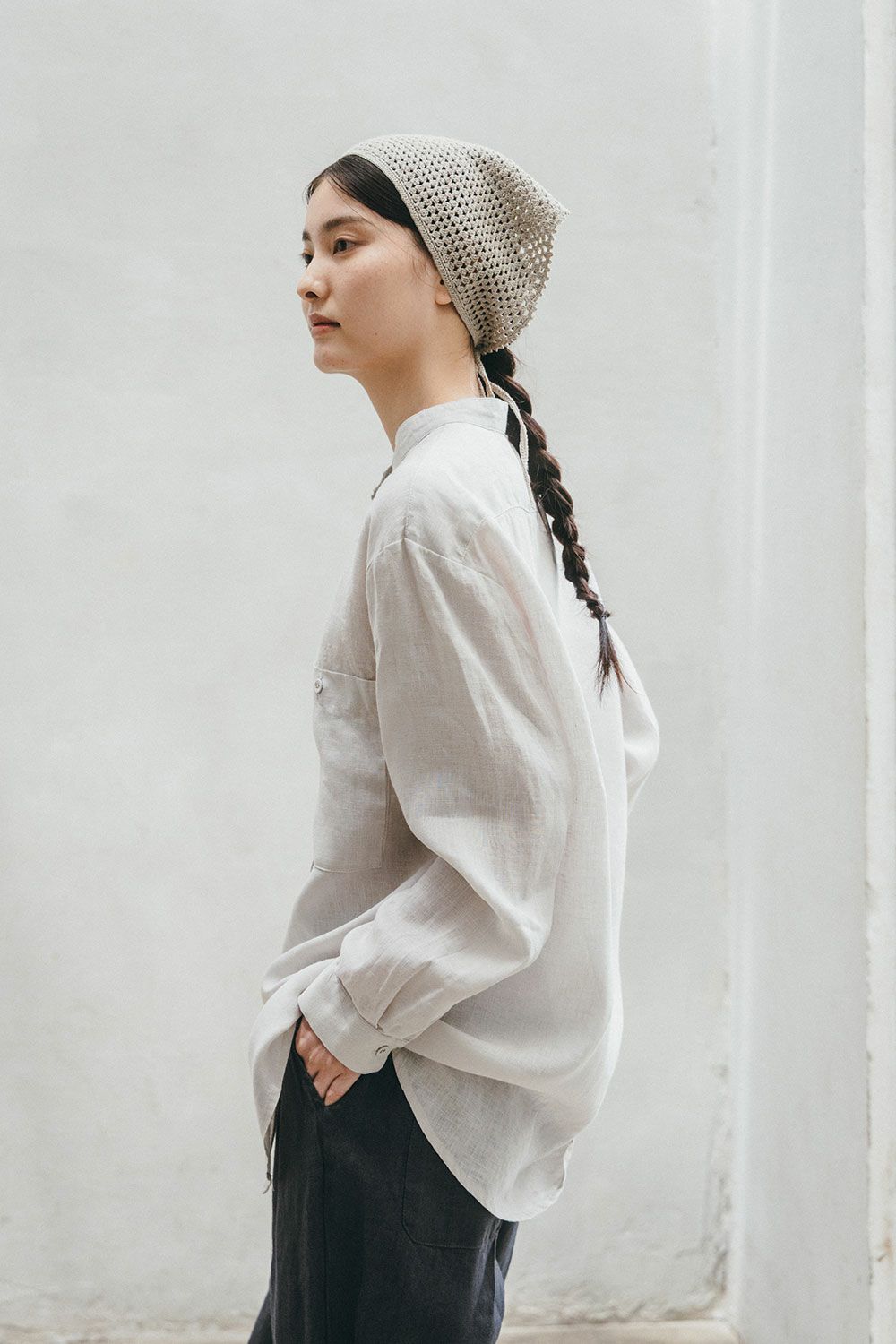 パールスラ スタンドカラーリボントップ アッシュグレイ