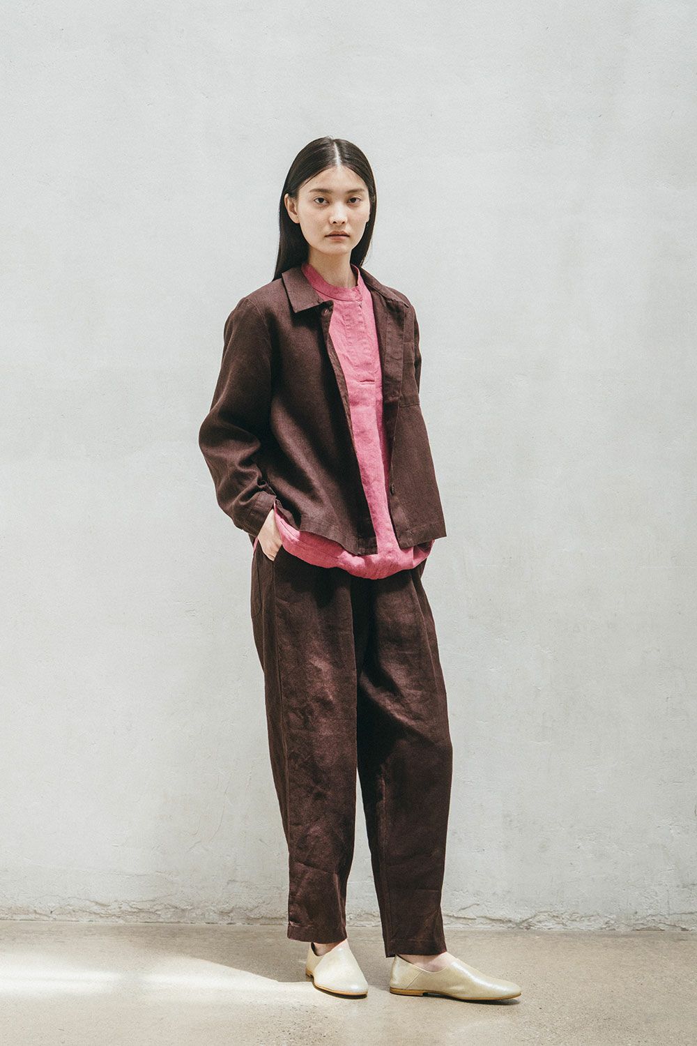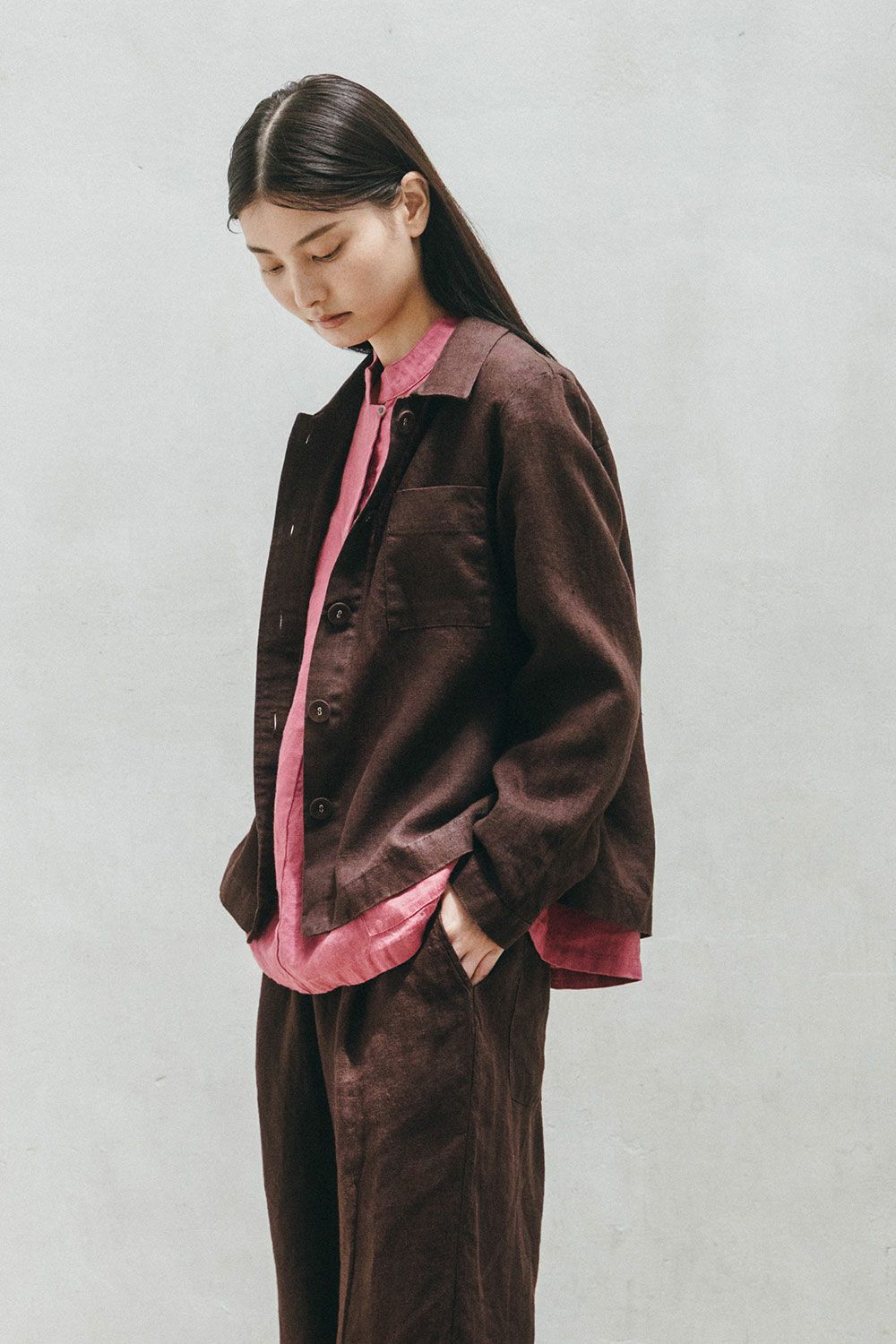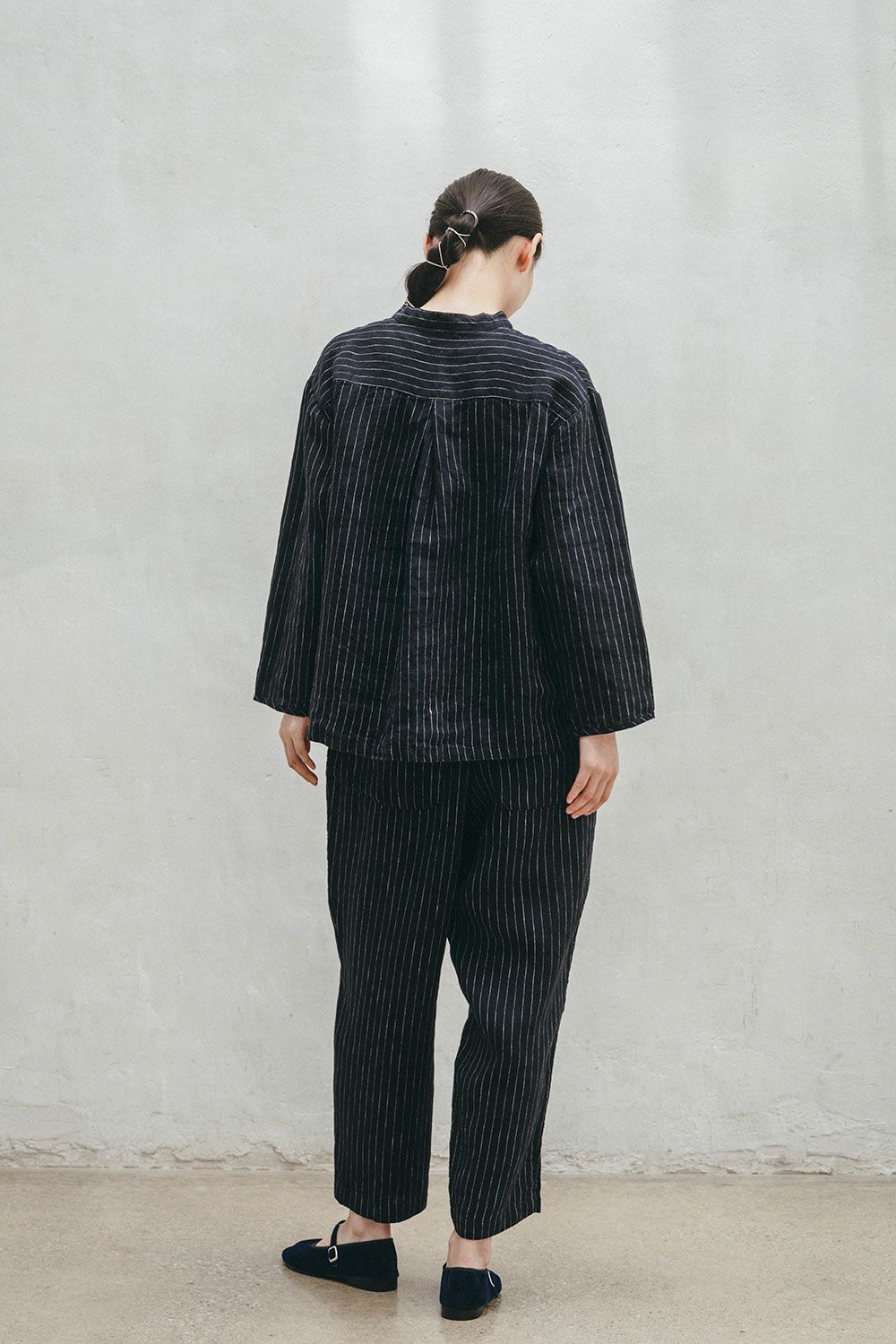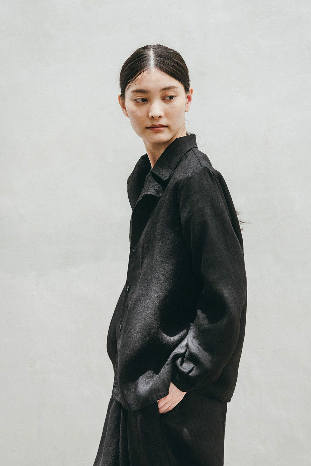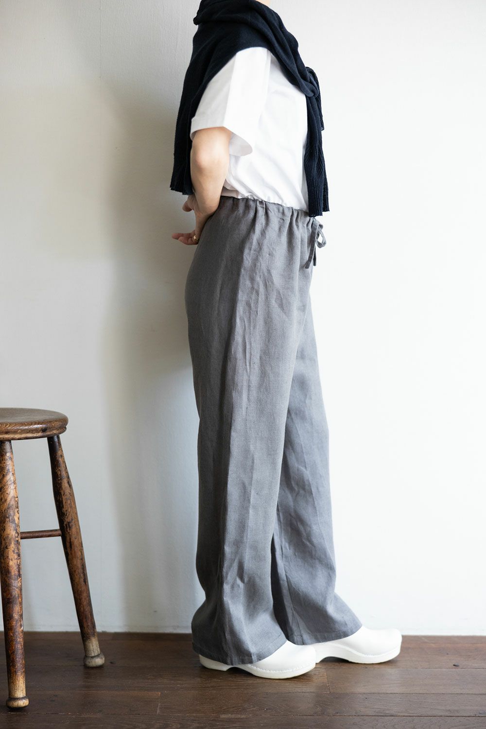 パールスラ スタンドカラーリボントップ アッシュグレイ