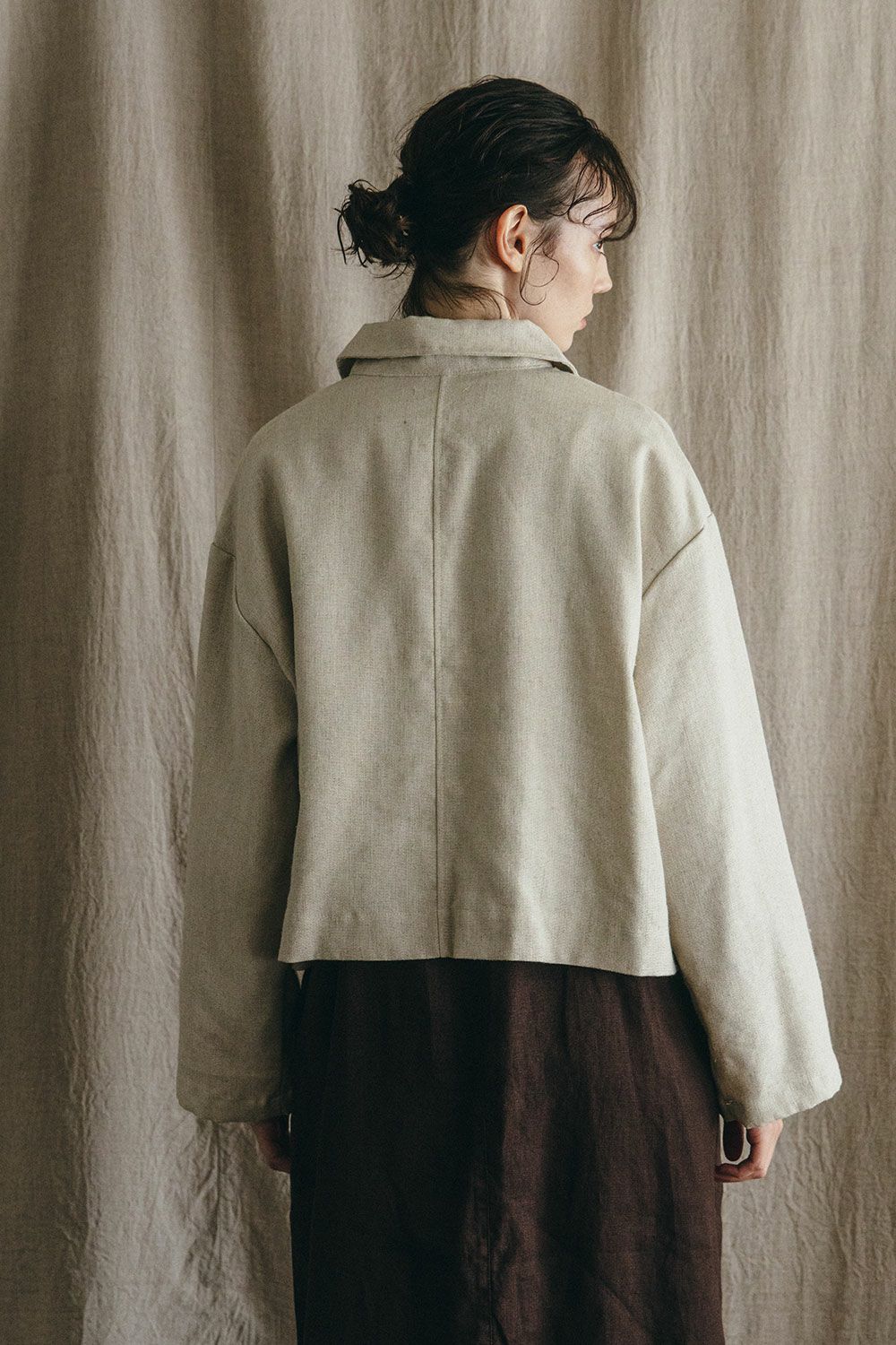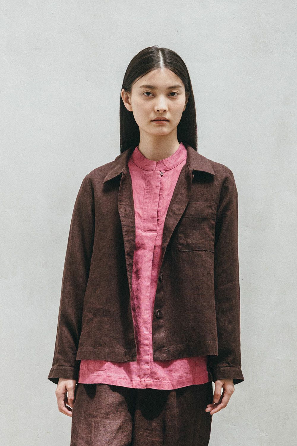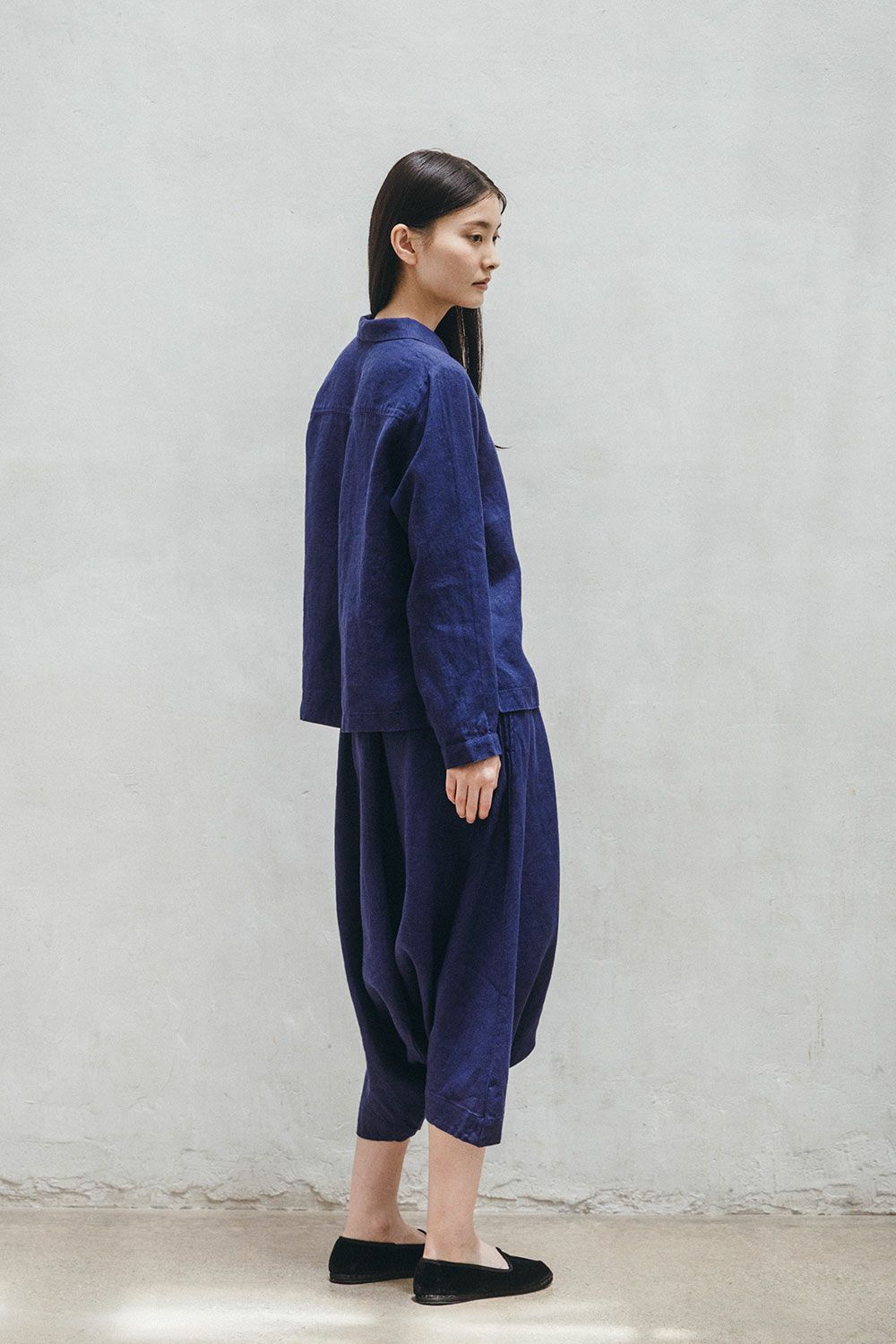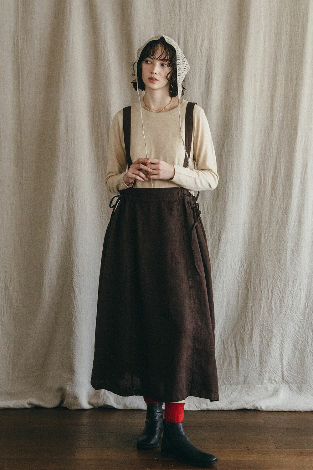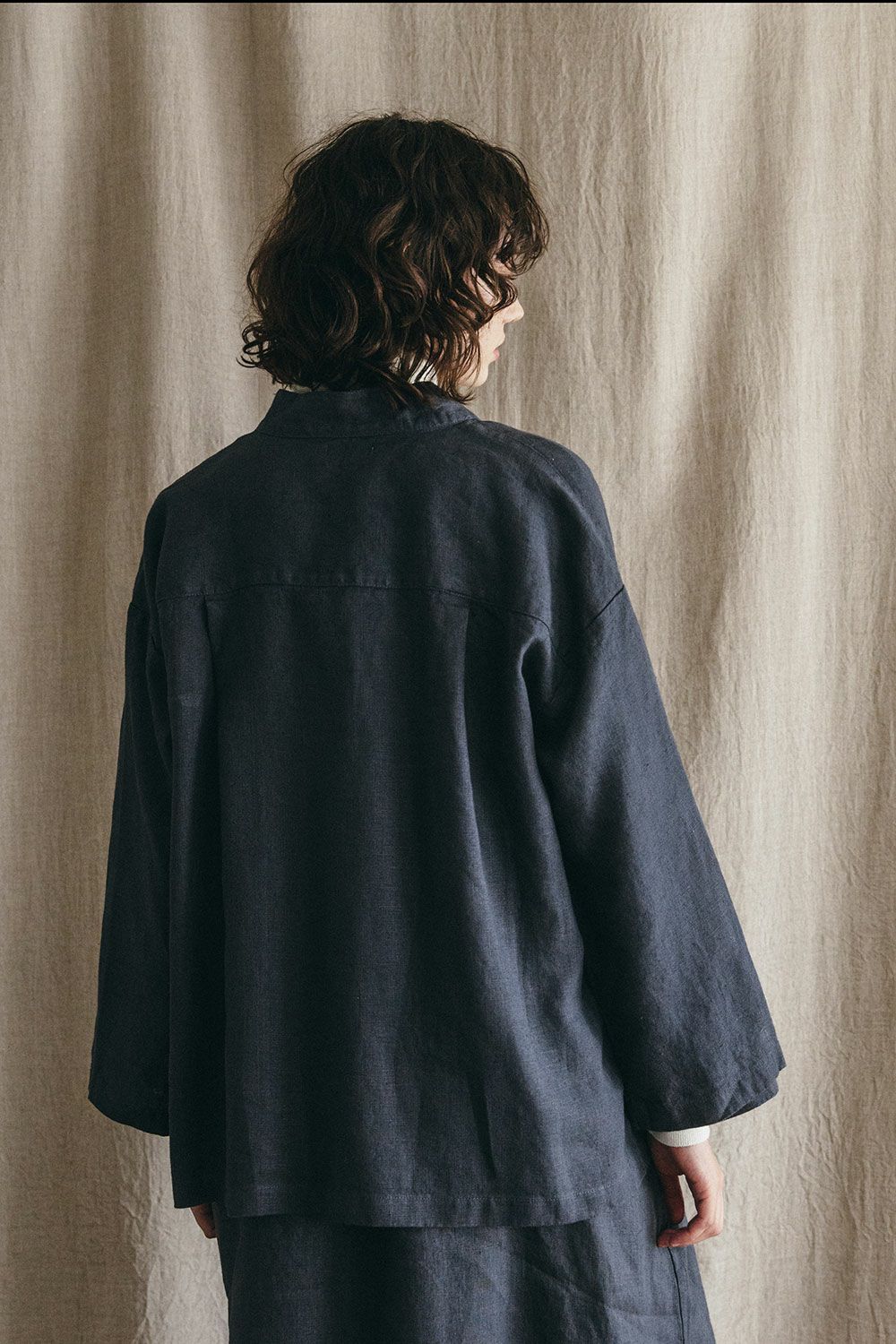 パールスラ スタンドカラーリボントップ アッシュグレイ