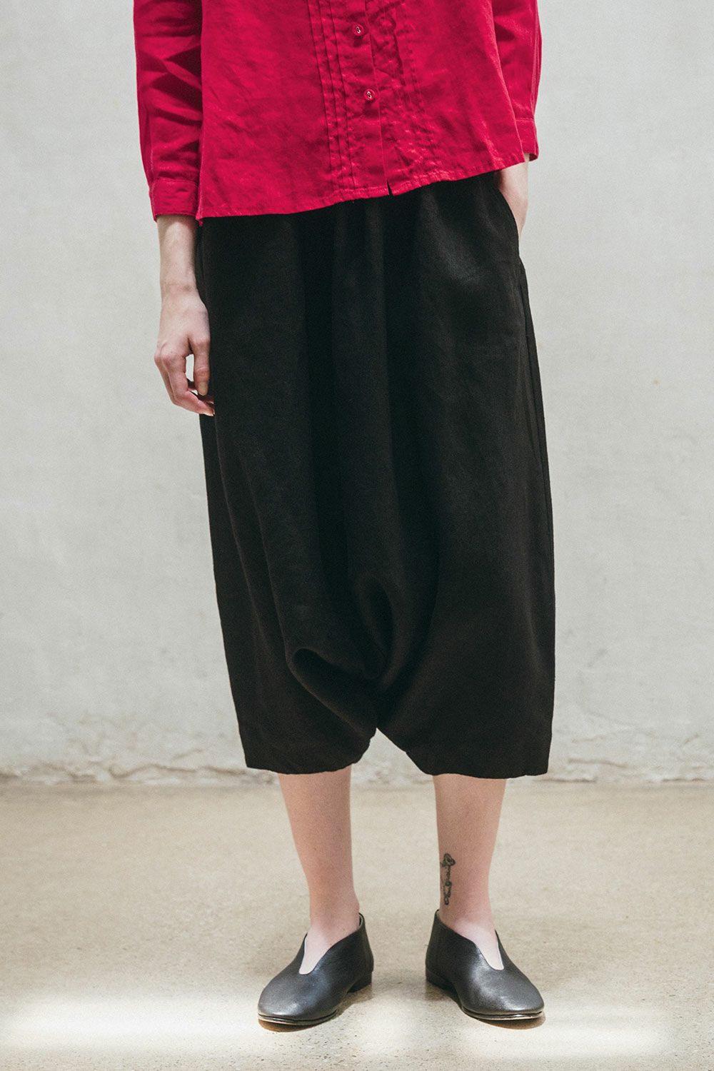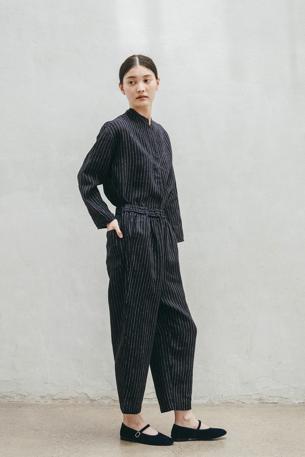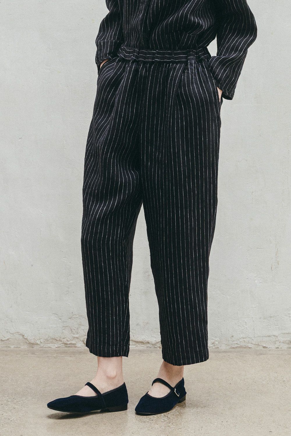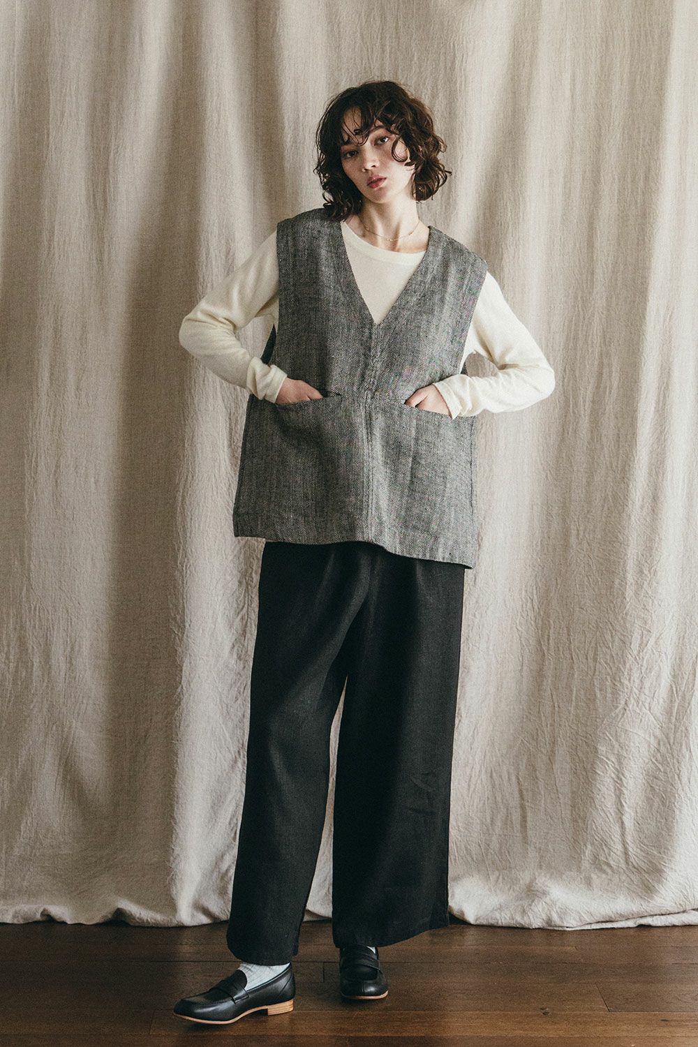 ヤスミーナ タックパンツ ウール ブラックチェック