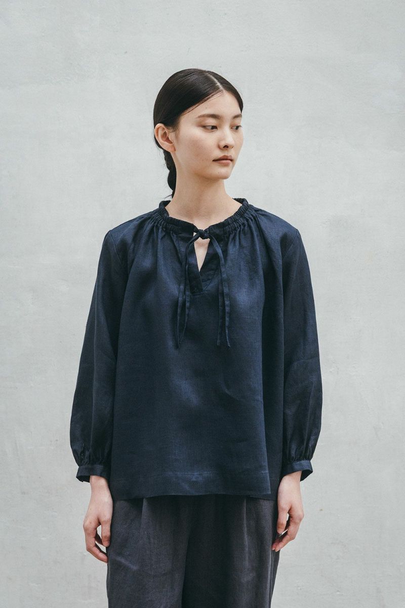 「ゆったりと気楽に肩の力を抜いて着られるけれど、首元などディティールがこっていて、おしゃれに見えるのが嬉しいです。リボンは結ぶと可愛らしい印象に、結ばないと抜け感が生まれて、こなれた感じになると思います」