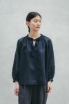 ブラウスは襟ぐりに施したシャーリングディテールでほど良いボリューム感と動きをプラスした一着。