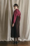 左:身長161㎝ 「ブラウンが秋冬にぴったりのジャンパースカート。身幅はゆったり目なので、中にセーターを着てももたつきません。くるぶしより上の丈で、楽ちんときれいが叶う万能な1枚です」