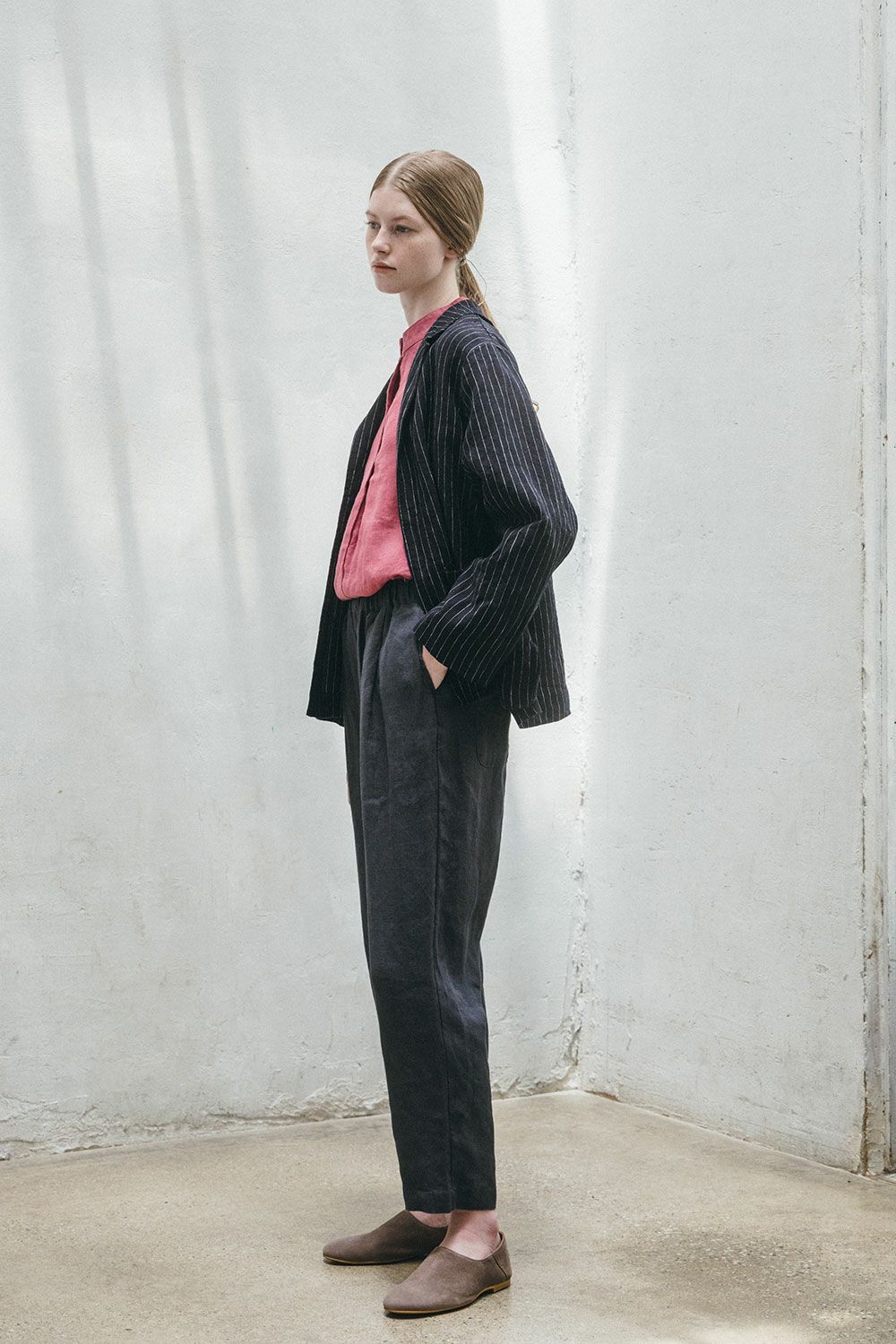 ズィエマ スタンドカラーコート ウール ブラックチェック
