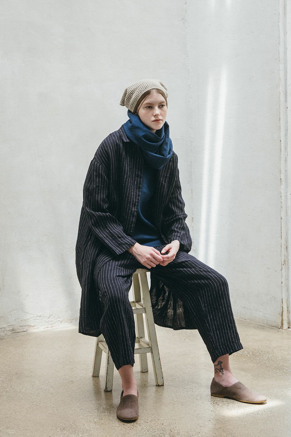 ズィエマ スタンドカラーコート ウール グレーチェック