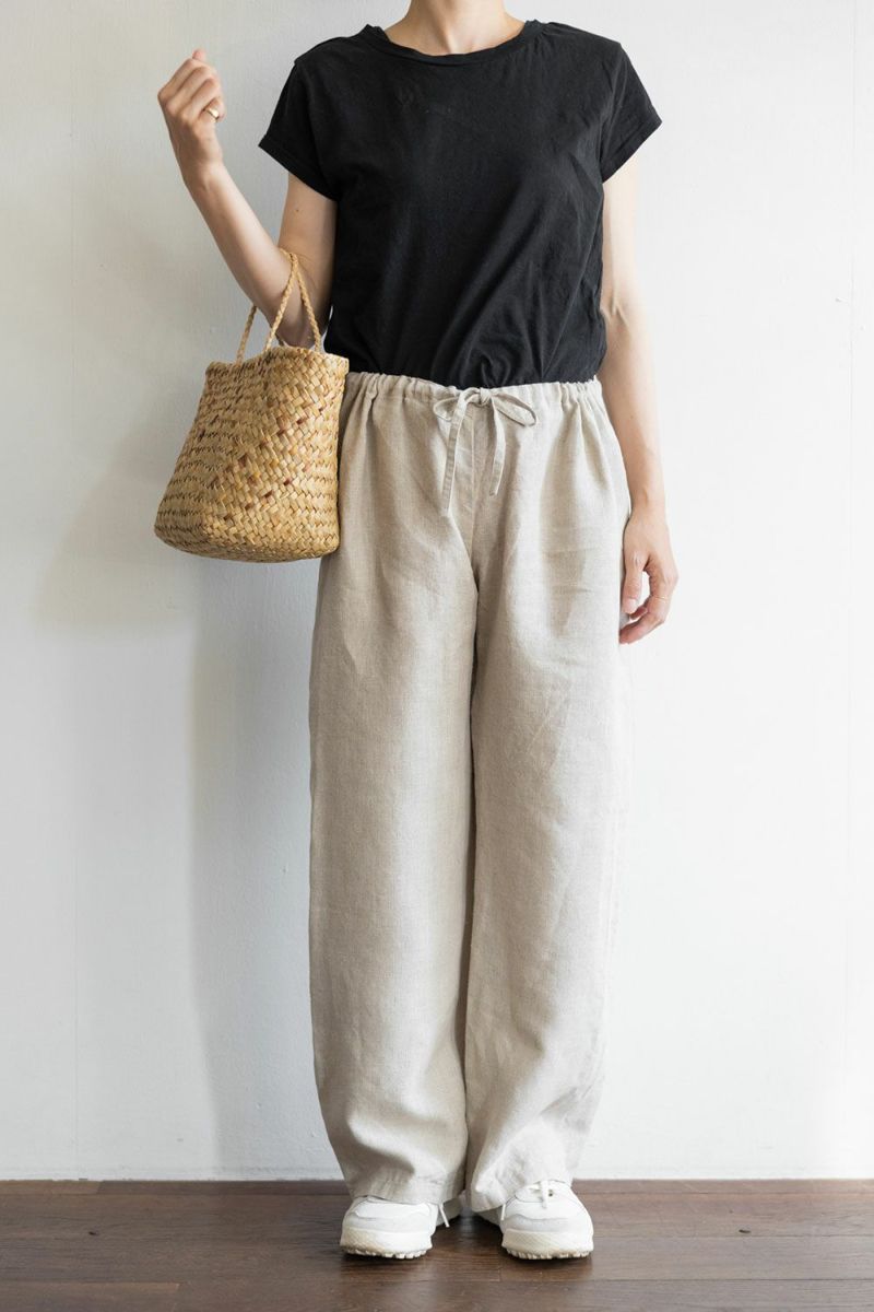 リネンとさらりとした肌触りが気持ちよく、リラックスウェアやパジャマとしてはもちろんのこと、合わせるトップスや靴次第で外出着としても使えます。