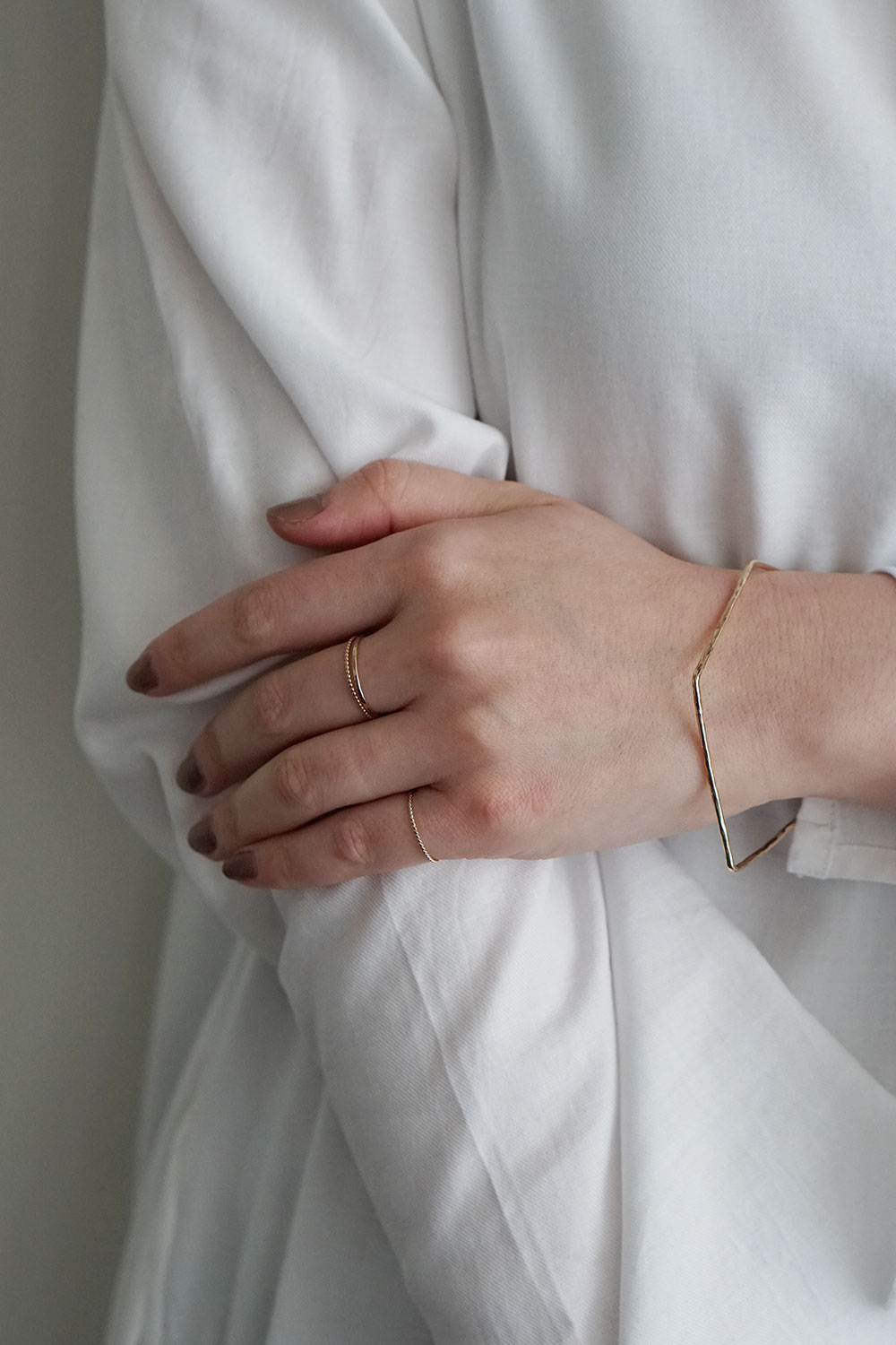 一本では上品に、重ね付けでは表情豊かに楽しめるのも魅力。