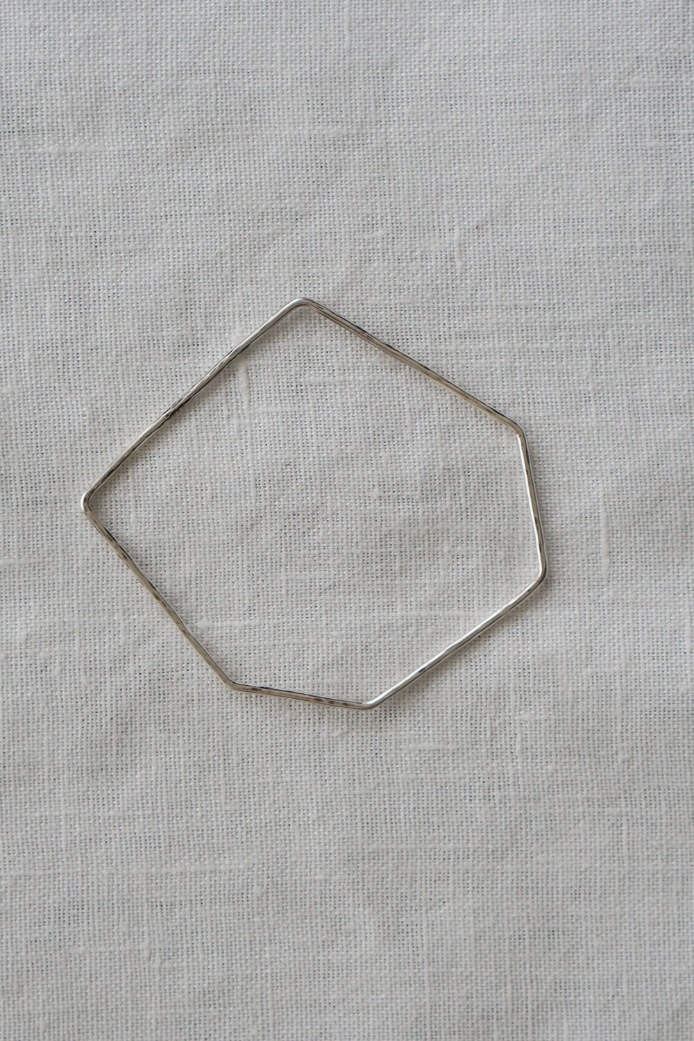 華奢なラインで描かれた多角形フォルムのバングル。