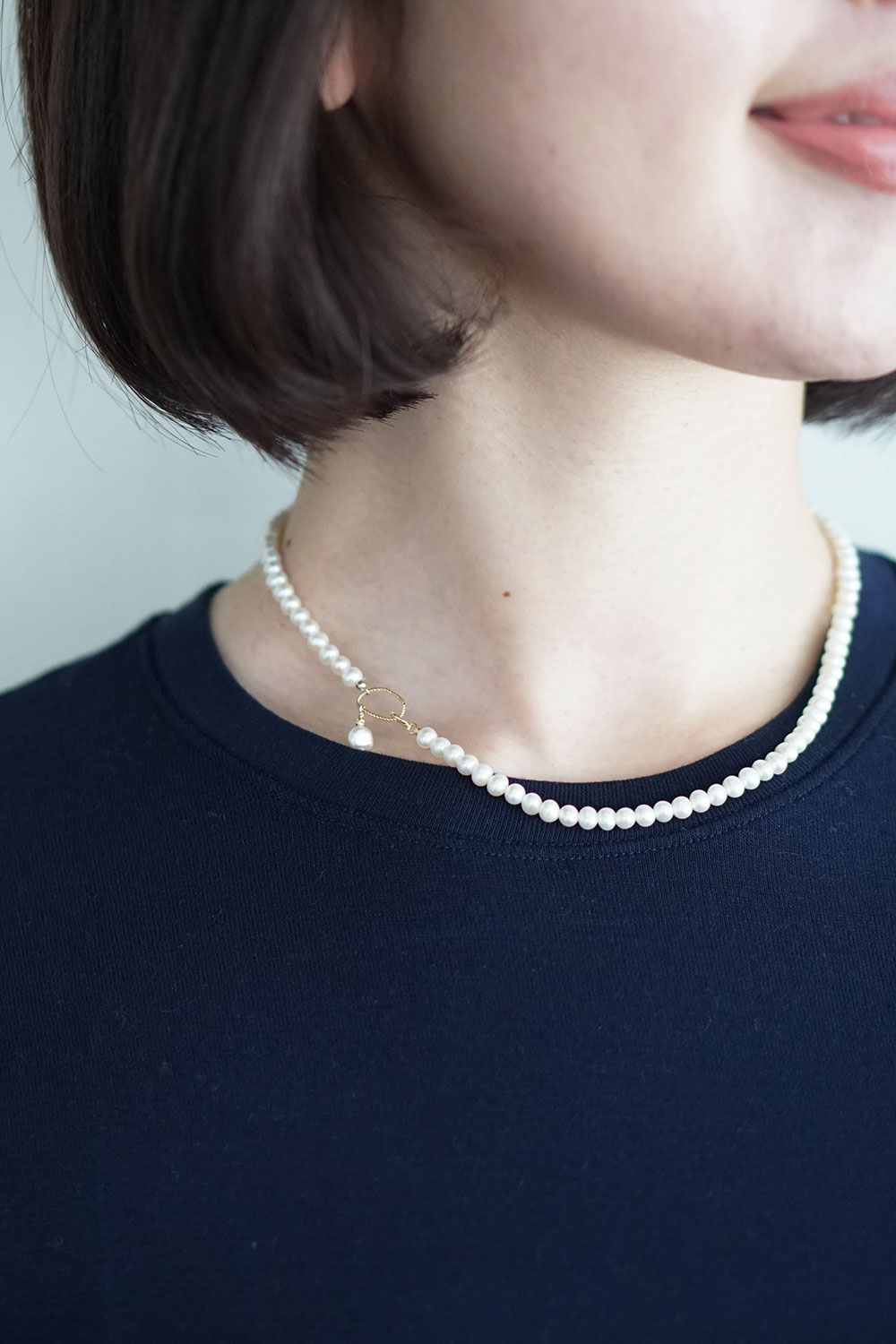 ちいさな淡水パールが連なった、上品な佇まいのネックレス。