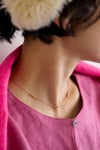 小さなブラスのビーズを等間隔に配置したアイシャ ネックレスは単品付けはもちろん、お手持ちのペンダントと重ねてつけても素敵です。