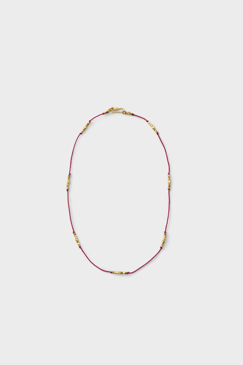 小さなブラスのビーズを等間隔に配置したアイシャ ネックレスは単品付けはもちろん、お手持ちのペンダントと重ねてつけても素敵です。