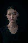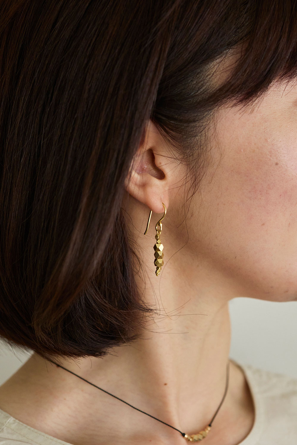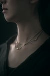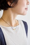 中央にブラスビーズを配置したラービアネックレスは首周りをすっきり、きれいに見せてくれる華奢なデザイン。