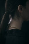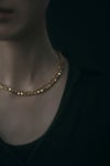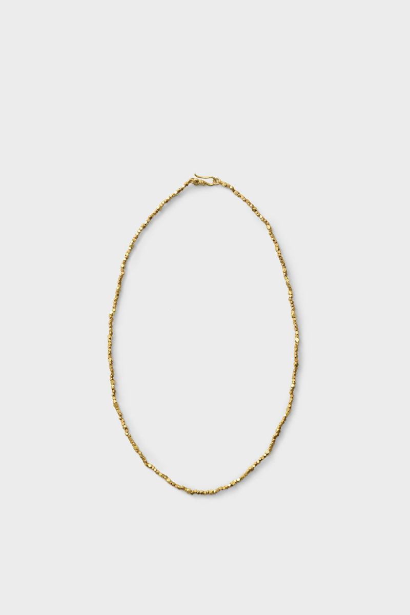 小さなブラスビーズが連なったマールネックレスは、華奢でありながらきらりと光り、存在感があります。