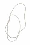 ロングタイプのネックレスは、ダブルにして首元を華やかに彩ったり、何重にもしてブレスレットとして使ったり。