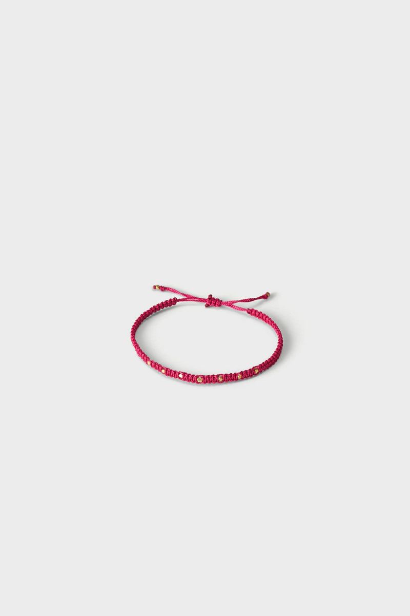 サリーマ ブレスレットは、小さなブラスビーズが編み込まれていて、控えめに輝くアクセントになっています。