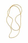ロングタイプのネックレスは、ダブルにして首元を華やかに彩ったり、何重にもしてブレスレットとして使ったり。