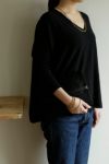 「きれいめなオケージョンスタイルに合わせてみました。ピカピカしすぎていないので、ブラックにシルバーがさりげなく映えて、着けやすいです。今回は L と S サイズを2本重ねづけしました。より華やかな印象になります」