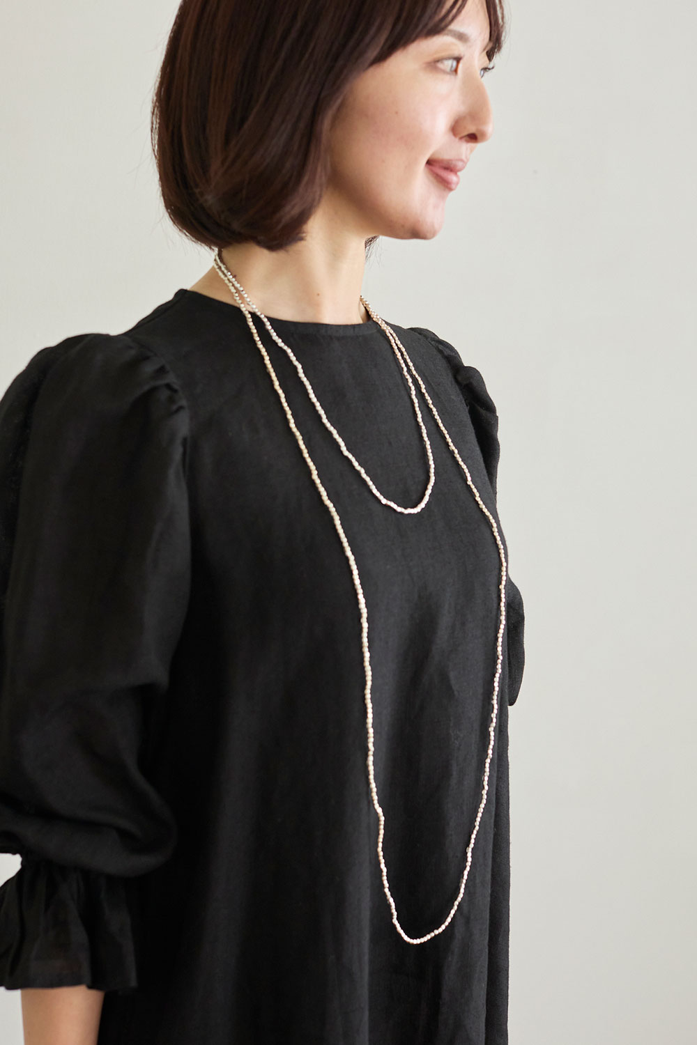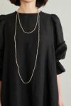 ロングタイプのネックレスは、ダブルにして首元を華やかに彩ったり、何重にもしてブレスレットとして使ったり。