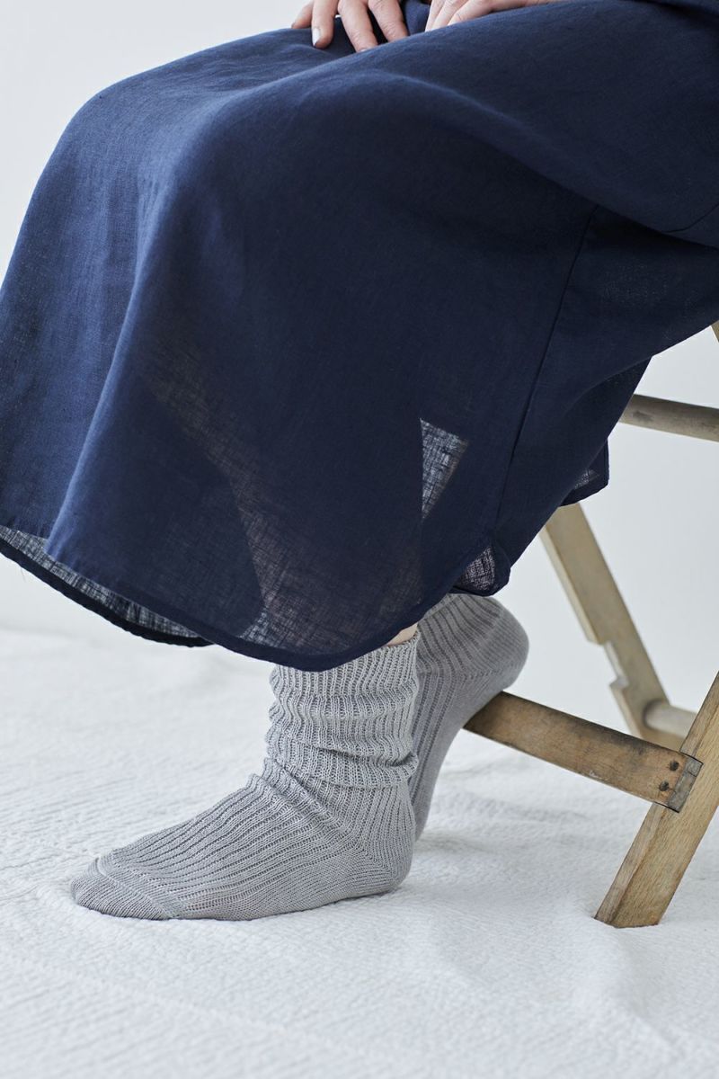 ミドルゲージで編んだリネン素材のリブソックス。程よいフィット感でリラックスした履き心地です。