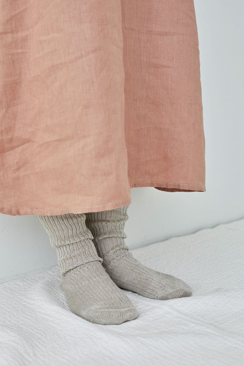 ミドルゲージで編んだリネン素材のリブソックス。程よいフィット感でリラックスした履き心地です。