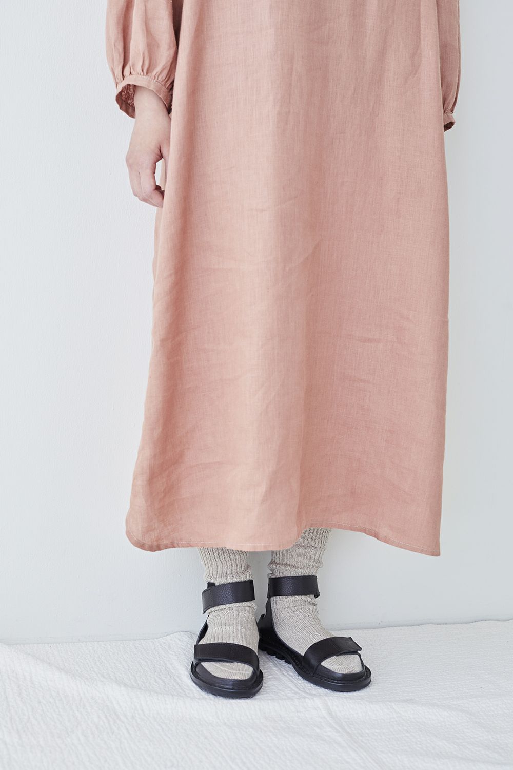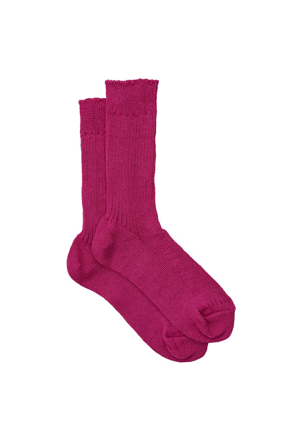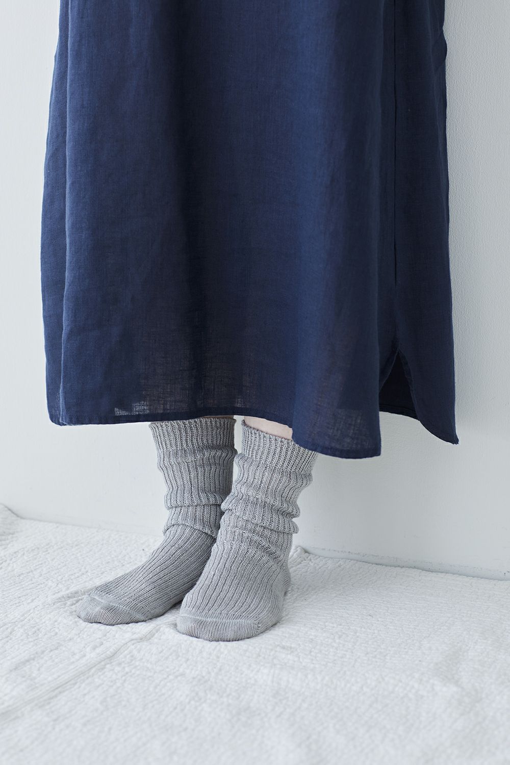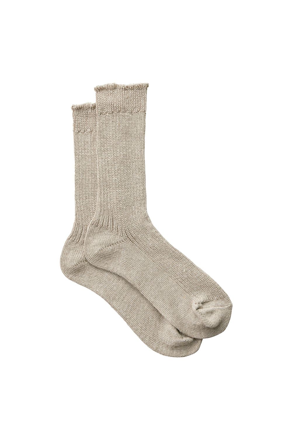 リネン ミドルゲージ リブソックス ローズペーシュ