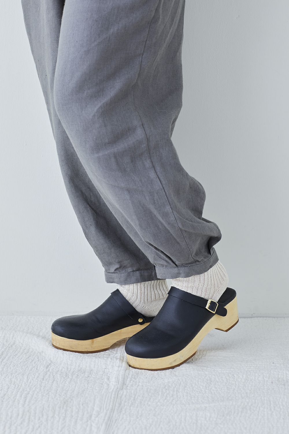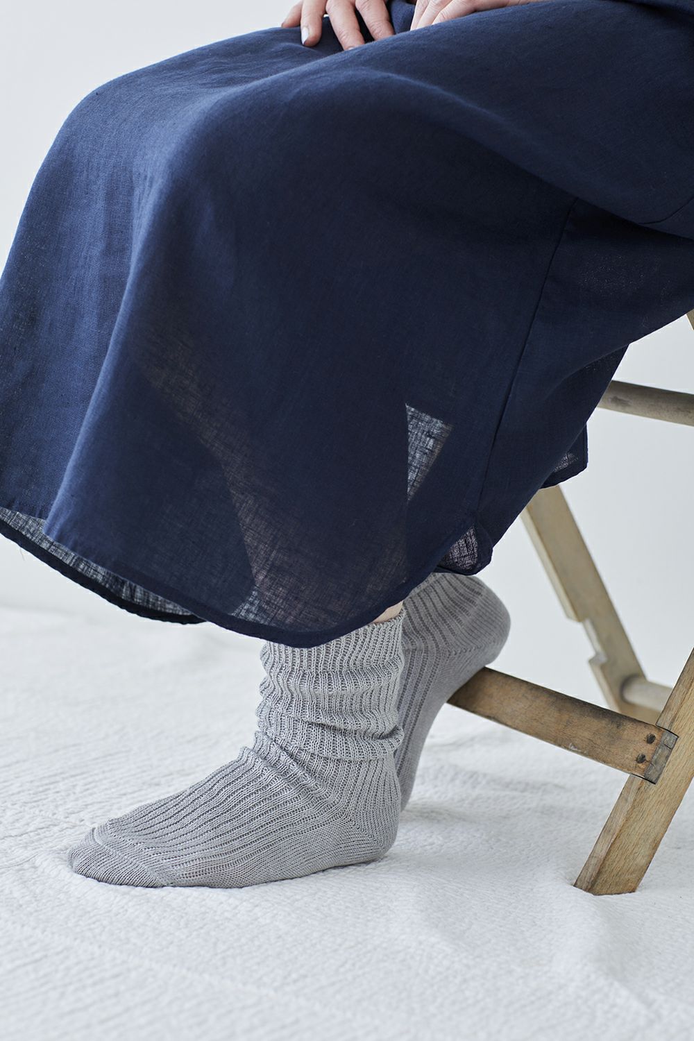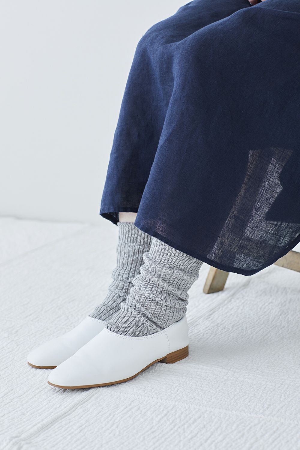 リネン ミドルゲージ リブソックス ローズペーシュ