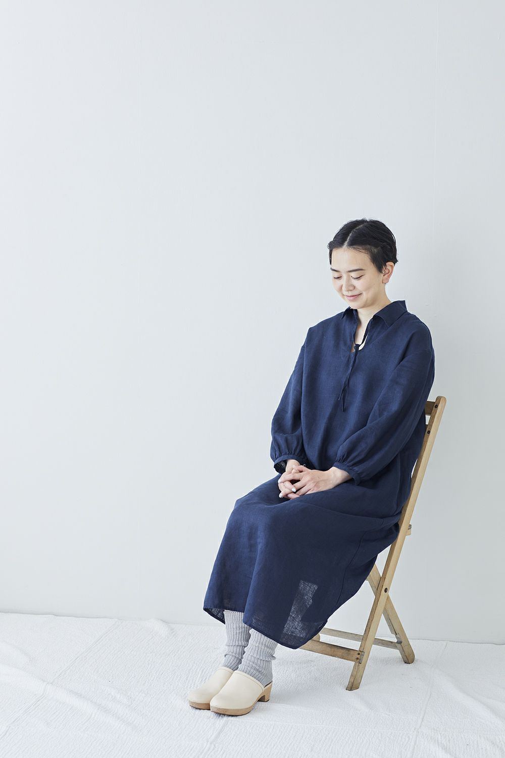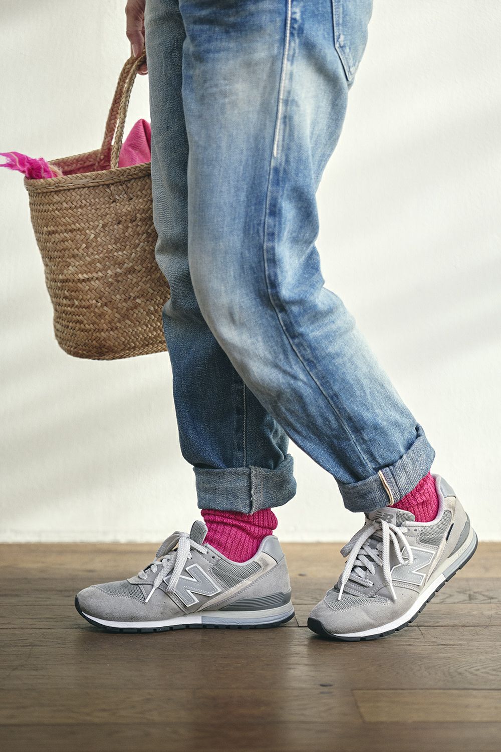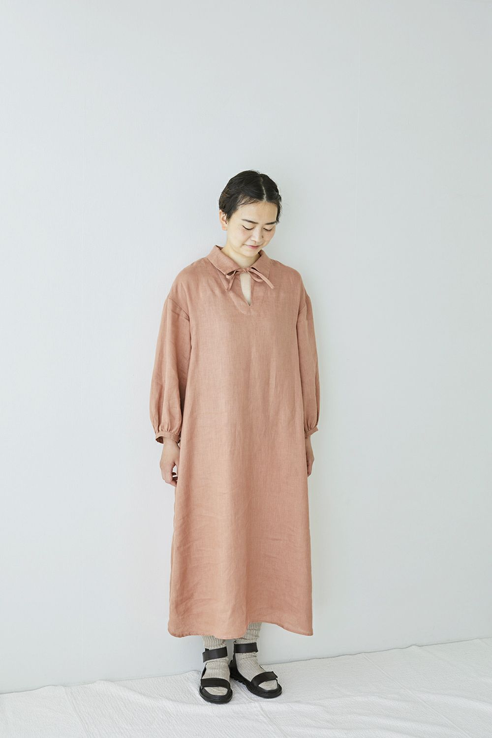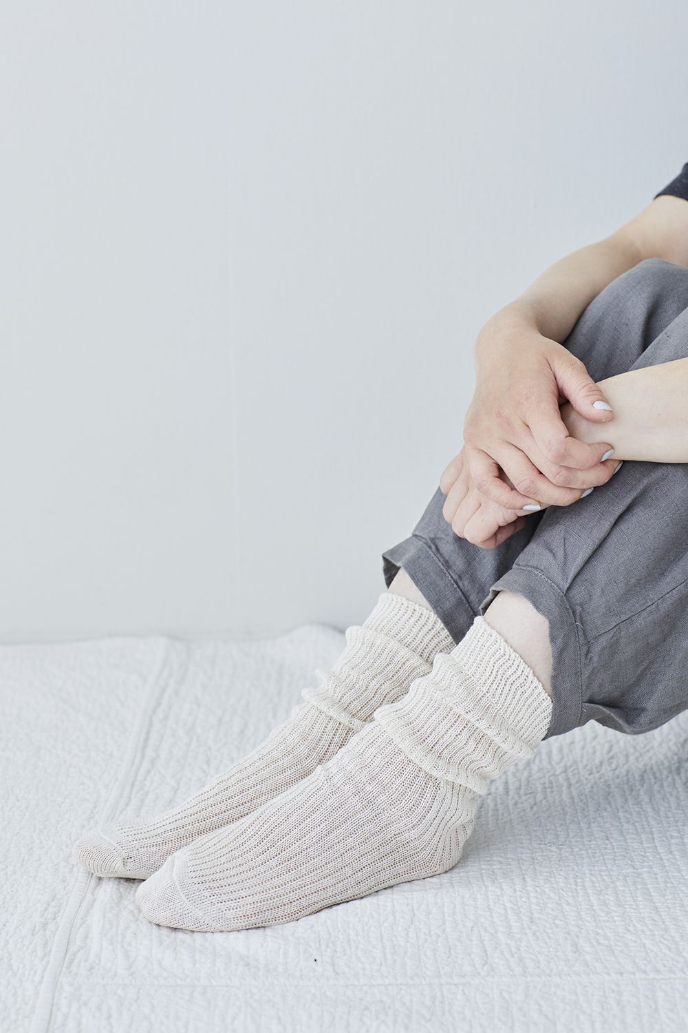 リネン ミドルゲージ リブソックス ローズペーシュ