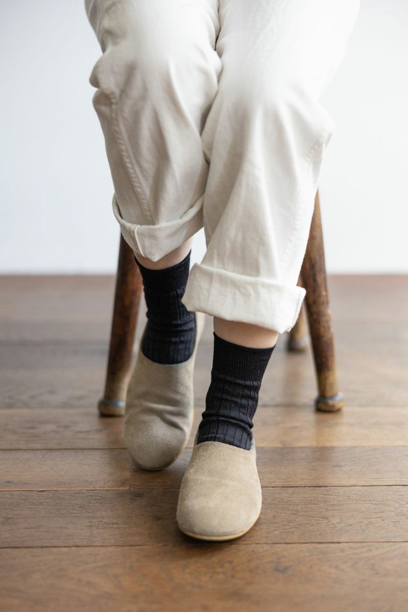 厳選されたフランス産の細番手のリネン糸で編んだリブ地のショートソックスです。