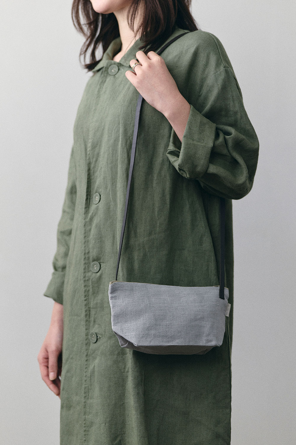 厚地のリネン生地で仕立てたコンパクトなサイズ感のアトリンバッグ。