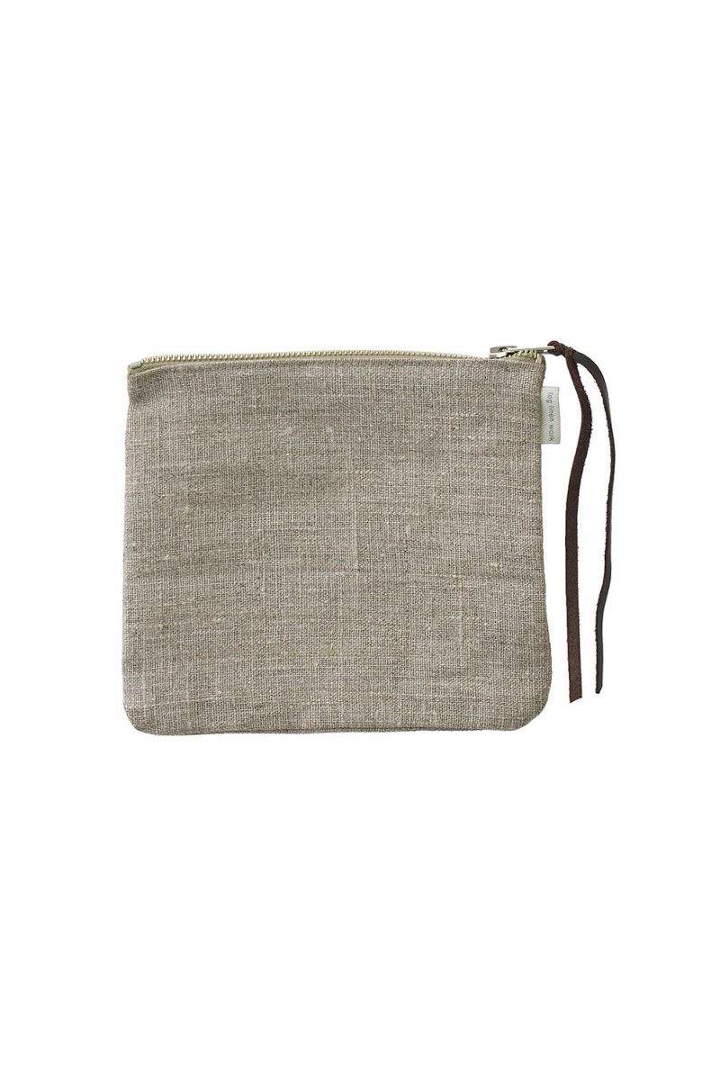 メタルファスナーに長めの革ひもがチャームポイントのカンナポーチ。