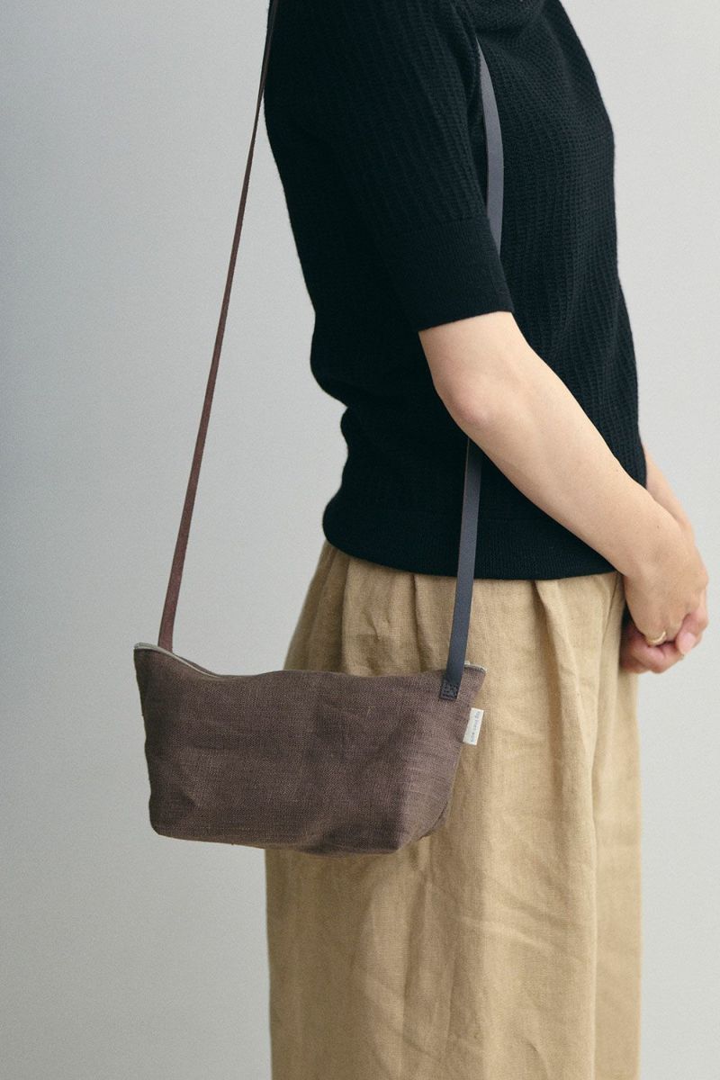 厚地のリネン生地で仕立てたコンパクトなサイズ感のアトリンバッグ。