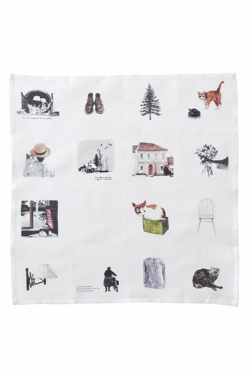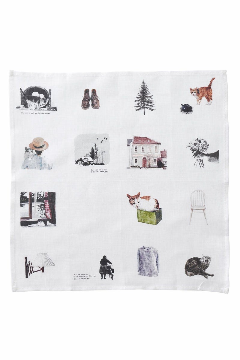 荻原美里さんの描く、静かで美しい世界観の絵をリネン生地にプリントしたハンカチです。