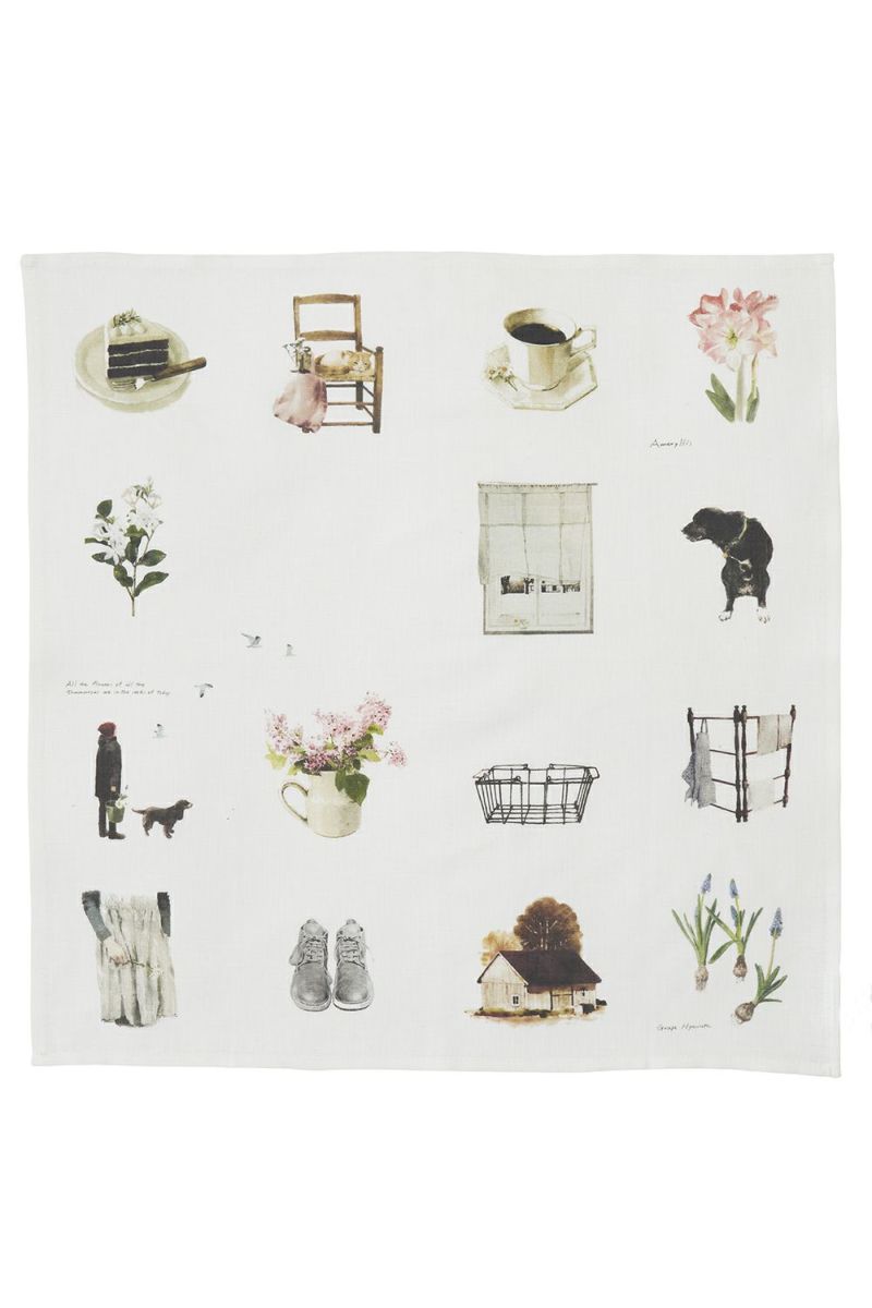 荻原美里さんの描く、静かで美しい世界観の絵をリネン生地にプリントしたハンカチに新しく「花との暮らし」が加わりました。