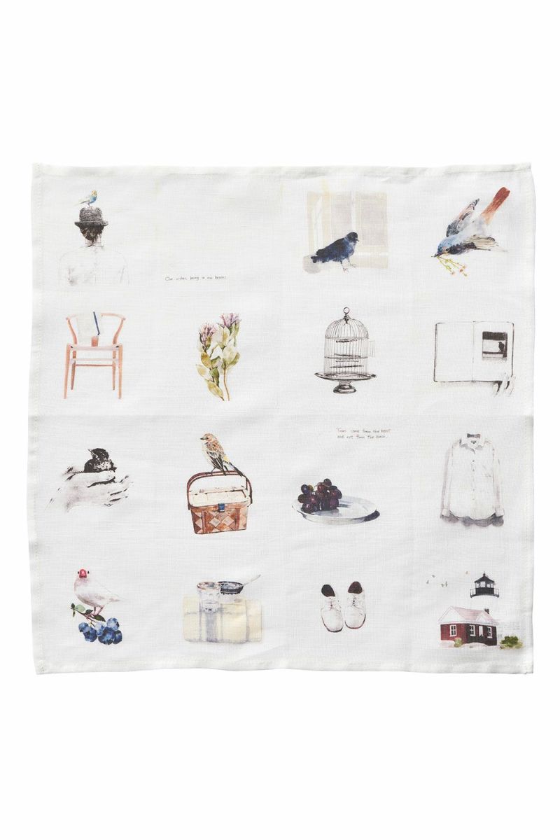 荻原美里さんの描く、静かで美しい世界観の絵をリネン生地にプリントしたハンカチです。