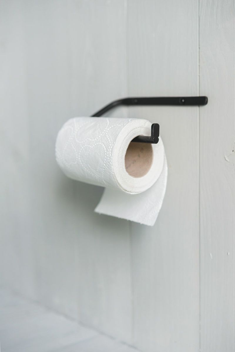 アイアンのバーを曲げたシンプルな作りのトイレットペーパーホルダー。