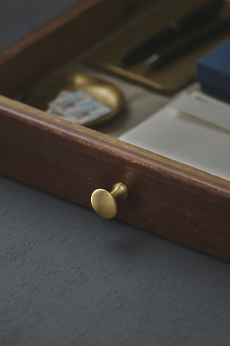 コロンとしたフォルムがかわいいブラスノブ。艶のない、少しくすんだブラスの自然な色と質感で様々な空間に馴染みます。