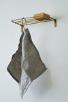 壁に取り付けてつかうワイヤーシェルフ。艶のない、少しくすんだブラスの自然な色と質感で、
