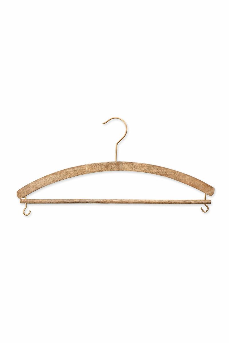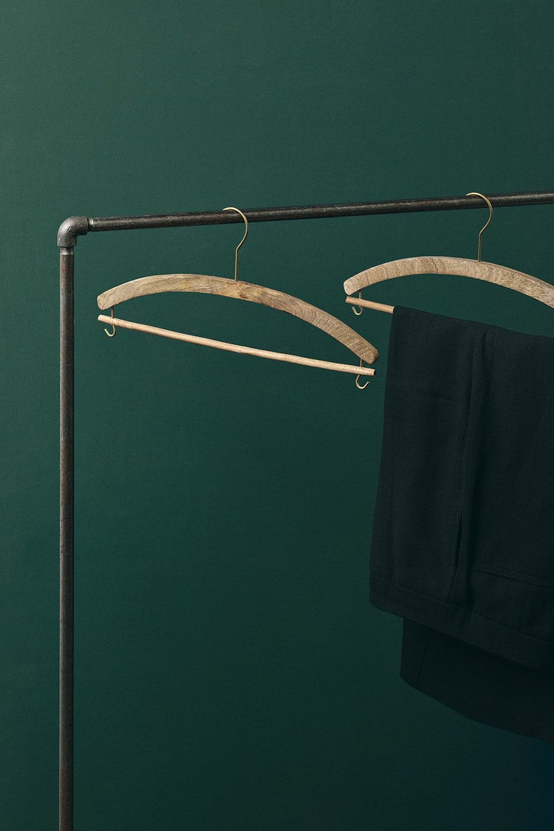 温かみのあるマンゴーウッドで作ったハンガー。金具部分はブラスでできています。