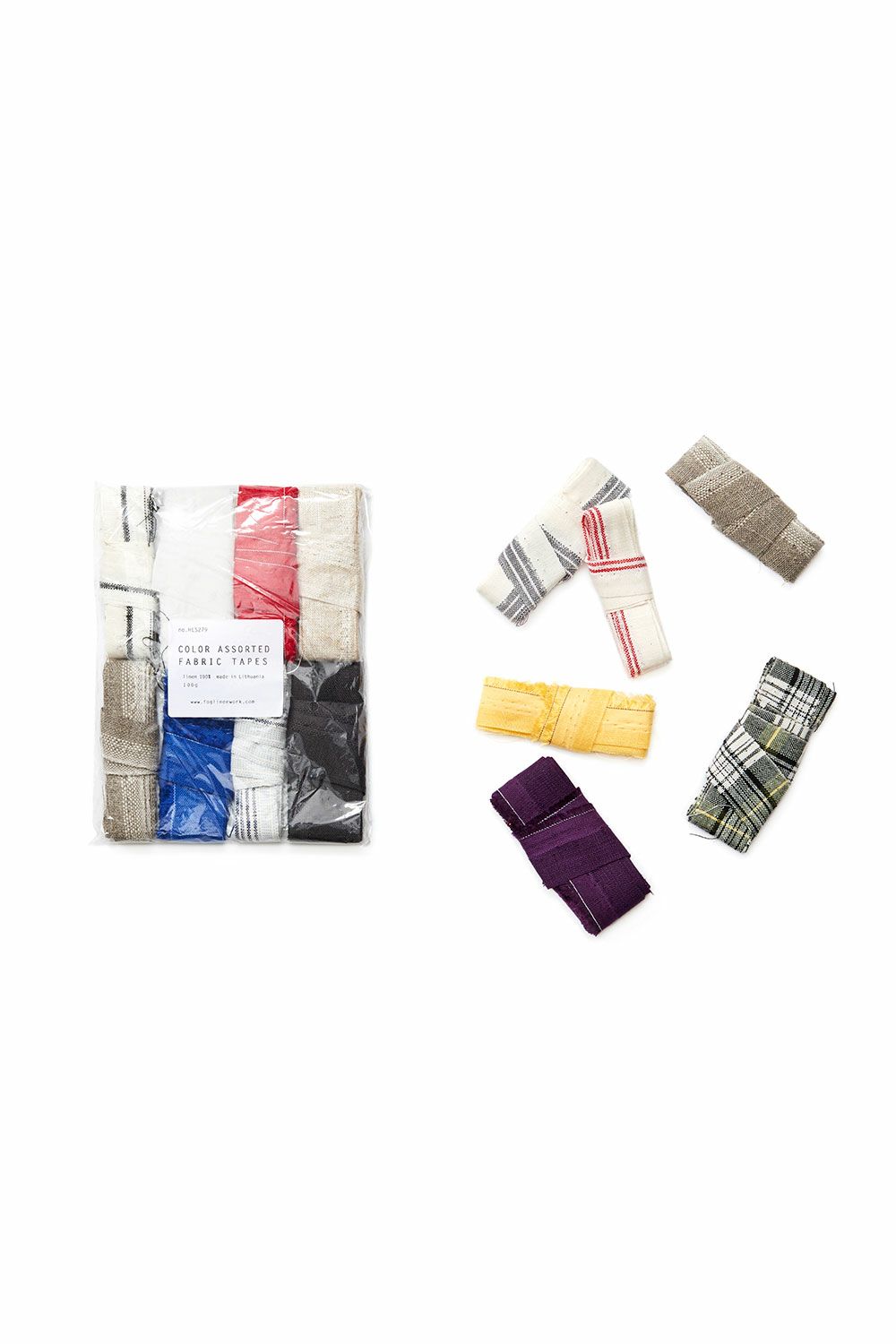 縫製の際にカットされる生地のミミやテープ状のはぎれを集めて100gのセットにしました。色柄や1本の長さはまちまちです。編んでポットマットにしたり、ハンガーにぐるぐると巻き付けたり、ギフトのリボン代わりに使ったり。アイディア次第でいろいろな使い道がありそうです。