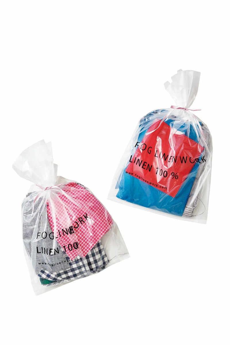 リトアニアでは繊維の再利用や回収が社会的に進んでおり、素材を大切に扱う観点から、小さめのハギレもセットに含めてお届けしています。