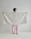 太めのリネン糸でざっくりと織った、厚手のシャンブレー生地でバスタオルを仕立てました。