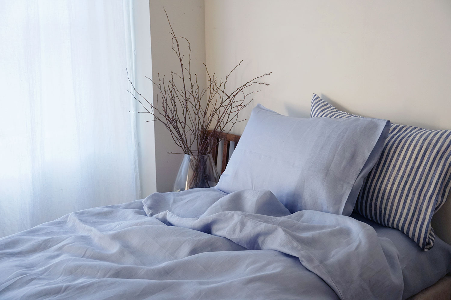リネンは天然素材の中でも特に丈夫な素材で、洗濯機で丸洗いすることができます。毎日使う寝具としても安心してお使いいただけます。