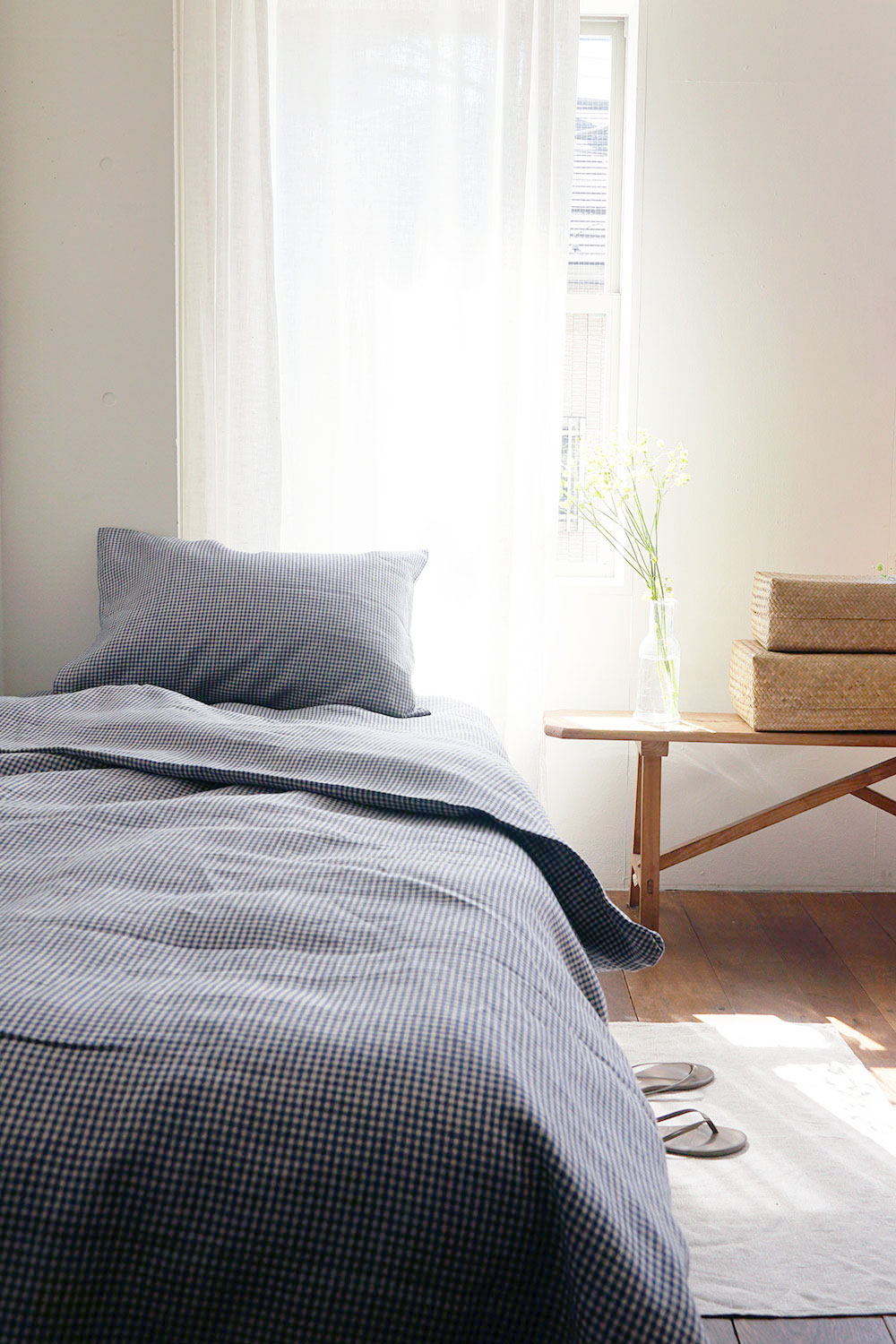 春夏はさらっとした肌触りで気持ちよく、リネン繊維の中は空洞構造になっているため空気を多く含み、一度温まるとその暖かさを保ちます。秋冬も心地よくお使いいただけるので、季節を問わず一年中活躍します。