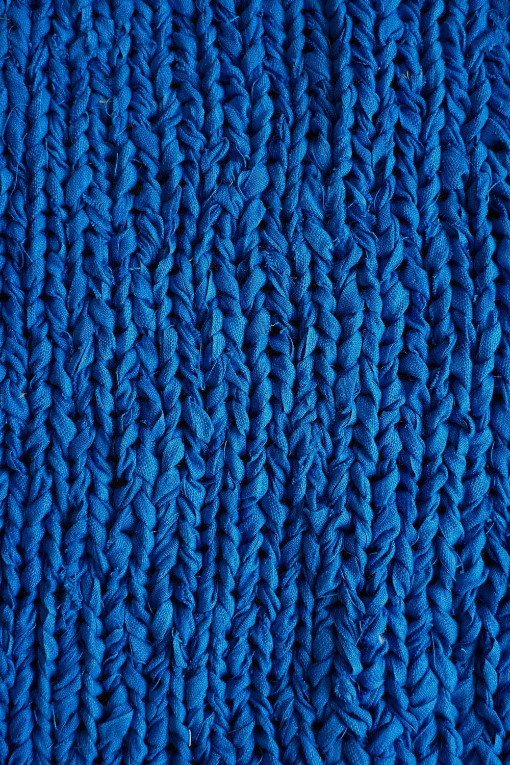 リネン製品のはぎれを使用して編んだニットマット。ざっくりとした厚みのある編地です。